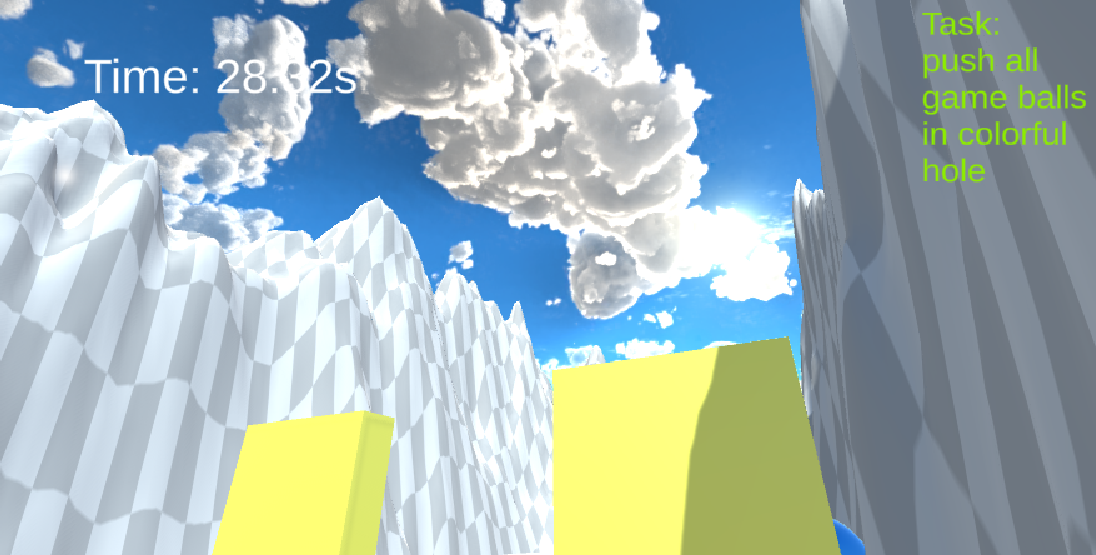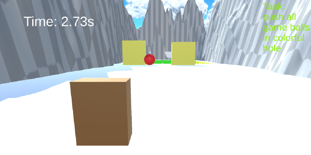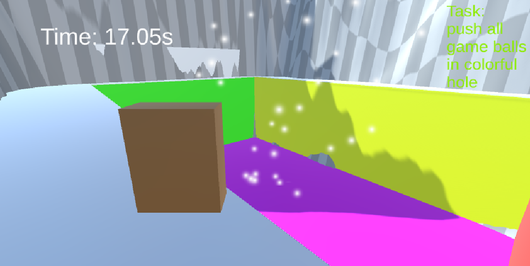 A physics based game where you push 4 game balls into a big colorful hole with objects trying to block you. There is a taskbar in the corner and a timer, I might update it now and then but I'm working on other games. This was my first game so there probably is bug and issues. Thank you for checking out my game.
